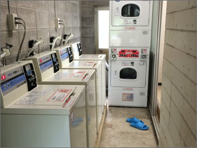 備え付けの洗濯機・乾燥機を無料で提供していたため、水道光熱費が大きな負担となっていた。無料設備からコイン式(有料)設備への入れ替え。テキストテキスト